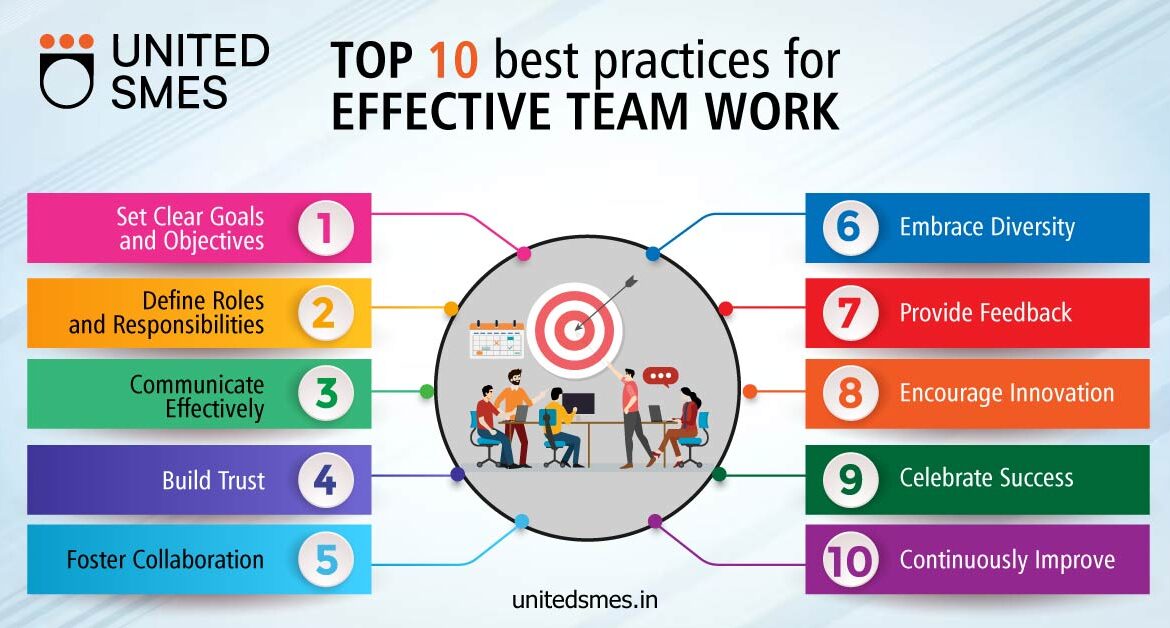 Effective teamwork is crucial for the success of any organization. A team that works together cohesively is more likely to achieve its goals and objectives than a group of individuals working independently. Here are ten best practices for effective teamwork: